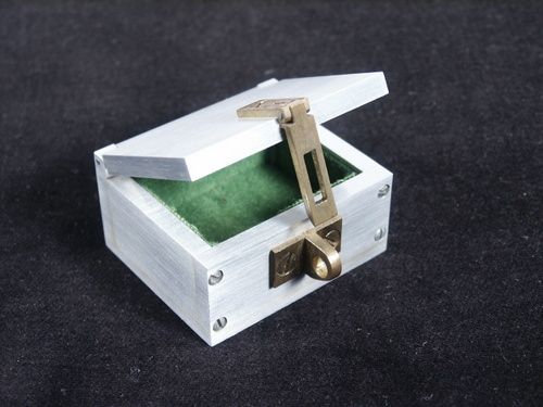 From 1981 comes this beautiful lippincott box precision made by Charles Kalish. Made in such exquisite form entirely from Brass and Aluminum giving the appearance of an impregnable miniature strong box. When shown to the audience it seems inconceivable that anything could get in while the box is locked but it is possible due to the ingenious construction. Includes 3 pages of instructions for use and a quality piece you will treasure that is difficult to find. Condition First Rate Collector's. | |