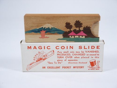 All wood magic coin slide sold through Enardoe in Chicago in original packaging. Condition very fine.