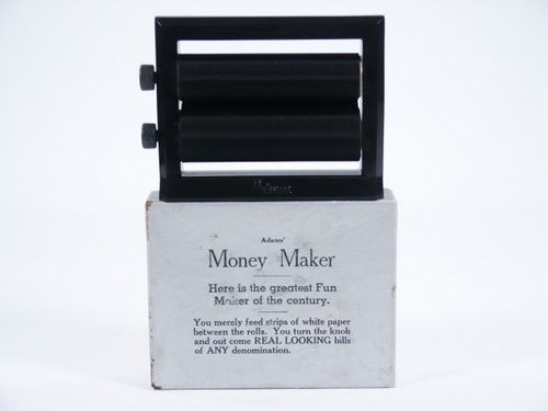 In original box comes this early money maker with wooden knobs. Includes instructions. Condition fine.