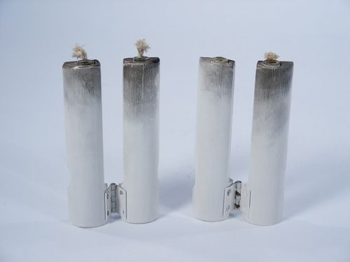 Starting with one candle 4" in length the magician lights it and it multiplies leaving him with two. This continues until four lighted candles have made their appearance. Includes instructions. One wick will have to be put in a candle. Condition good used.