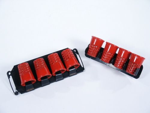 A fine set of 8 wood thimbles with two different styles of holders. Includes Ireland instructions with illustrations. Hard to find and in very fine condition.