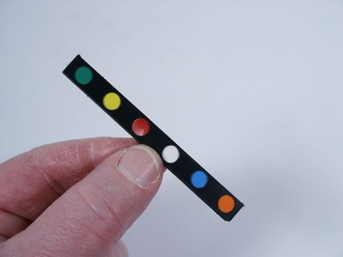Multiple changes of color beginning with a white dot with the finale being the six different colored dots on both sides of the paddle! Includes instructions. Condition very fine.