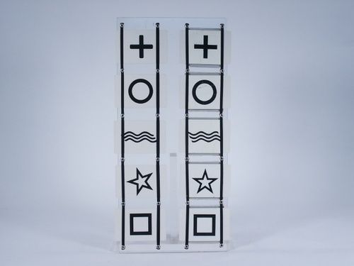 Making use of a clear plex board measuring 16” x 7 1/2”. The performer demonstrates his ability to match a spectator's random order selection of cards placed under holders on the board. Includes cards and instructions. Condition good.