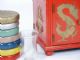 By Haenchen and Company. A cabinet measuring 12” wide x 8 1/4” high x 7” deep is shown with a stack of 7 different colored checkers 4” in diameter and a cover for same. The front and back doors are opened to show empty and then closed. Three glasses of water and two large silks are produced! The checker cover is shown empty and placed in one side of the cabinet and checkers placed in the other side with doors then closed. The doors are opened and cover raised showing the checkers have changed sides passing through the solid partition and the metal cover! The cover is placed over one of the glasses of water on the table and then magically the checkers are now under the cover and the glass of water is in the cabinet! The glass now passed back to the cover on the table while the checkers pass into the other side of the cabinet. The magician then produces a fourth glass of water. The cabinet is made of wood as well as the checkers. Includes 4 glasses, silks not supplied. This is an early effect and certainly shows the wear of time and is in quite rough condition and should be sold with that in mind. Includes 2 pages of instructions. Auctioned in as is condition.