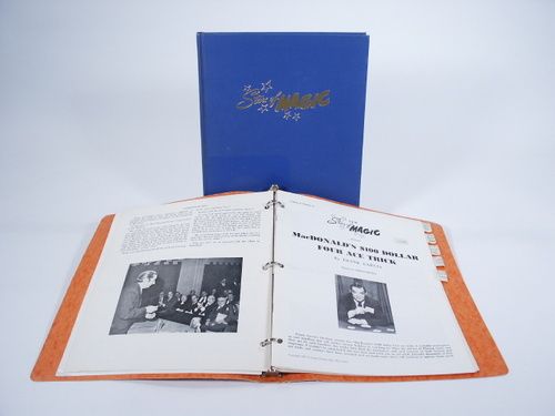 | Cloth bound with gilt stamping, 165 pages plus ads chock full of photographs of the stars themselves teaching, plus 8 additional separately issued New Stars of Magic. First bound printing of classic cream of close up and from the following greats: John Scarne, Dai Vernon, Bert Allerton, S. Leo Horowitz, Francis Carlyle, Dr. Jacob Daley, Slydini, Ross Bertram, Vernon on Leipzig, Vernon on Malini. Book: Light foxing to page edges, fade to cover. Condition fine. Separate issues: light soil, identifying tabs added to edges. Condition fine. | |