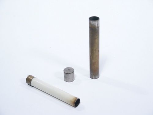 These do not surface very often and the effect is of a cigarette that is lighted and puffed being placed immediately into a small tube and cap put on. This may be handed to a spectator if desired and when cap is removed in place of the cigarette will be found a wooden match! All made of brass with contemporary extractor. Condition with tarnish, very good.