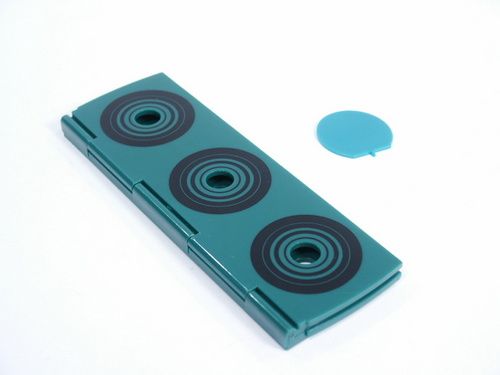 Quarter size coins placed in three wells with paper strip laid over and panel closed. Pencil is pushed through center of each coin and when panel opened paper strip has pierce holes yet coins are intact! Includes instructions. Condition very fine.