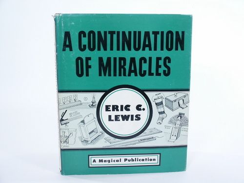 A Continuation Of Miracles, A Magical Publication, 1980, hard bound, pictorial cloth, gilt stamping 254 pages with Index, illustrated throughout also having photographs. Mr. Lewis and his rich history of building inventing and the many friendships are evidenced within this book that will surely delight any magic lover. Light foxing top page edges. Condition very fine.