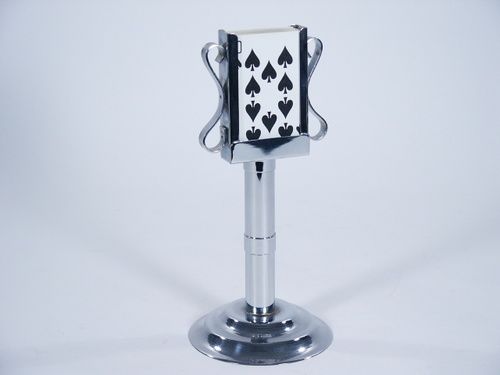 Circa 1950's by Abbott's. Standing 9 1/4" high this metal skeleton frame houlette will cause cards to rise one after another and at the completion of the effect the houlette and stand may be examined. The motive power for the rising of the cards is made so that it can be removed so that examination may take place.