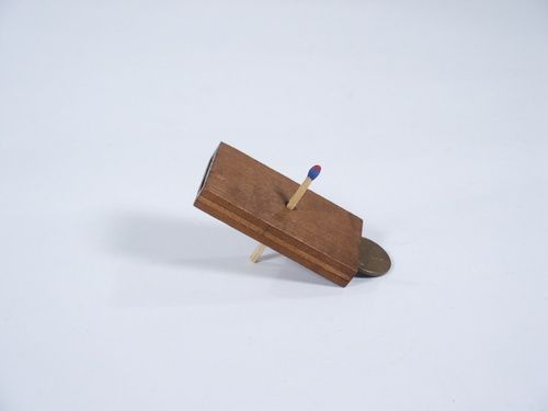 An oblong wood block with opening large enough to allow the passage of a penny is shown and a wood match (not supplied) is inserted in a hole that is in the center of the block. The penny (not supplied) is dropped in the top of the block and it passes completely through the solid match and falls out the bottom!