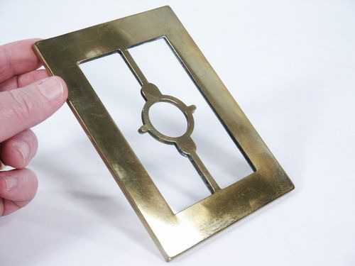 This beautiful piece is in natural brass and carries the patent number upon one side of the frame which aids the magician in performance. Includes instructions. Condition very fine.