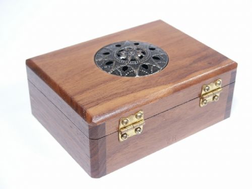 This handsome chest of walnut has an open grill medallion in the top and will play a musical tune but much to the shock of onlookers it has no mechanism inside to produce the music!