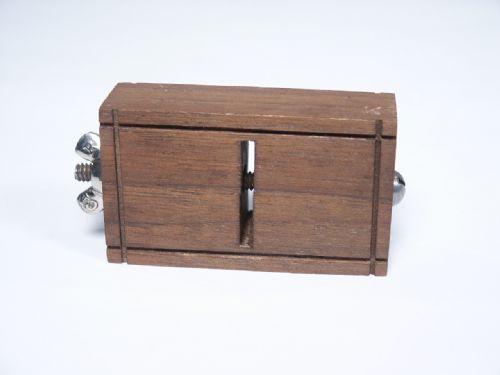 The original with the Kenard stamp in the wood which is made of walnut. A bolt is inserted lengthwise through the block and fastened tightly with a wing nut. The bolt prevents passage of a coin through opening in the block yet the magician is able to have this happen! Includes illustrated instructions. Condition very fine.