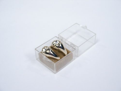 These rings come with illustrated instructions for Grant's clever version of an impossible effect. The rings were stored next to foam insert and as a result have made the finish on the rings rough. This would be a good example to learn the routine with and if need be have your own set made easily by a Jeweler. Condition fair.