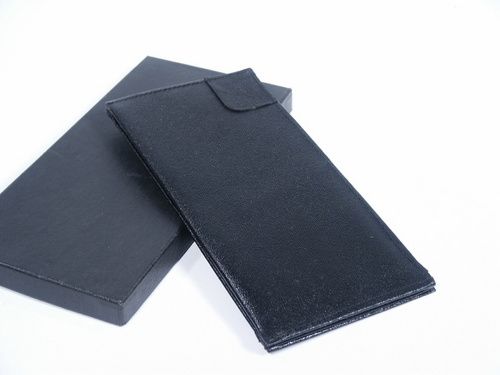 This wallet made of leather is only 1/4” thick having a red finish interior and so deceptive. Includes instructions for several routines. Condition very fine and in original box.
