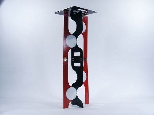 A Harbin Style Table standing 32” high with a tabletop measuring 10 1/2” square that is stable enough to hold items. At conclusion of routine the magician reaches down and quickly folds table into small flat parcel that is imprinted with the words “That's All”. Condition: absent two rivets and in good used.