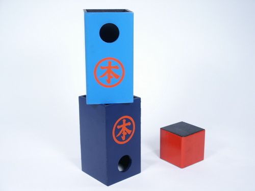For the classic penetration of a solid wood block through a solid panel or pane of glass (not included). Block is 2 1/2” in size and chimney tubes with opening top and bottom to show passage of block through solid panel or pane.