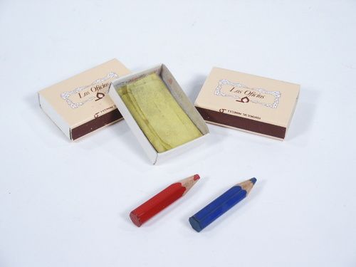 Two pencils one in blue and the other red and a piece of tissue paper are shown. Spectator is asked to wrap one pencil in tissue and place in the matchbox and closed and given to the performer. The other pencil is hidden from view of the performer in the spectator’s hand. The performer does not fail due to the mechanics involved in naming color location!