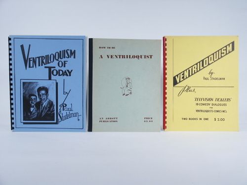 With the successes of Ventriloquism in today’s marketplace these might be a good course of study. Includes: How To Be A Ventriloquist, 17 pages. Ventriloquism Of Today Paul Stadelman, 85 pages with many illustrations and photos. Ventriloquism Plus Television Ticklers, Two Book In One, 48 pages. Condition fine.