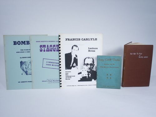 Carlyle Lecture Notes Volume 1, Bombay World's Greatest Card Trick, Staggered Sensational Card Mystery, But Not To Play by Wilfrid Jonson, 1946, cloth bound 116 pages with index and Easy Card Tricks. Condition overall good.
