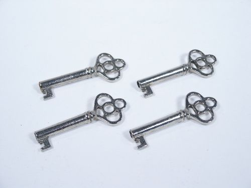 Four keys are laid upon the table and a spectator is asked to pick one up. Now it is the turn of the magician and he picks a key up. The spectator is asked to choose another key which is done and the magician picks up the final key. The spectator is asked to do as the magician does and in this case rub the two keys together in an elaborate and mysterious way. If the spectator would rather have one of the keys that the magician took in place of one they chose they may do so. Now the magician goes to work rubbing the keys together once more and leaving one key touching another the bottom key is given a twist and let go. The key adheres and spins leaving everyone watching quite amazed. More action continues through the routine to the further amazement of all. Includes the four keys and illustrated instructions. From Great Britain. Condition very fine.