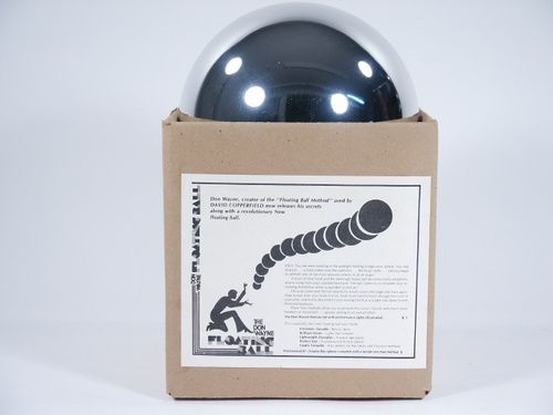 Found new in original box this is an 8” brilliant finish silver sphere that comes with a complete simple one man method. Made of a super lightweight Duroplas and extremely durable and resists dents. This is a beautiful effect to watch performed and this one from 1980 along with 12 pages of illustrated instructions. Condition as new.