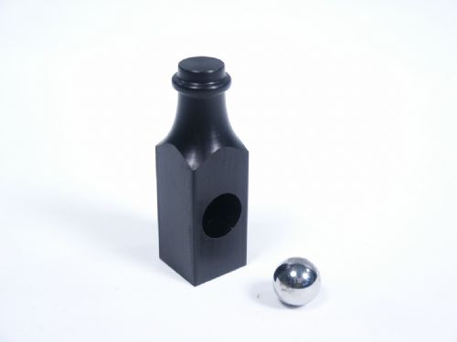 Skillfully made of black anodized metal standing 2” high with a steel ball bearing that the magician can cause to stay in place in a hollow cavity when the bottle is turned over defying all reason of gravity! Includes 2 pages of instructions. Condition First Rate.