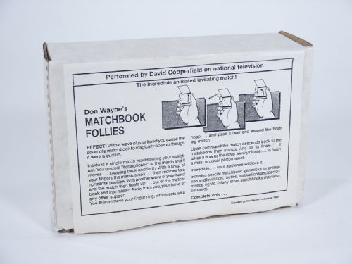 1988 incredible animated levitating match which was performed by David Copperfield. Worth the price as admission to the secret and method of how it is done. Includes the apparatus along with 11 pages of illustrated instructions for this mysterious effect. Condition unused, very fine.