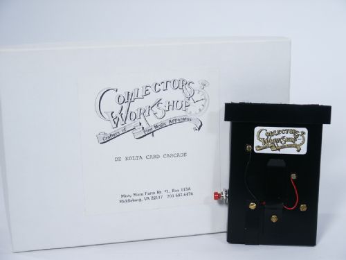 From 1988 this is a well built unit that makes for fun and mayhem. The magician has a card selected and then points to his breast pocket suggesting that the card has traveled to the pocket. After all eyes are drawn to the pocket a fountain of cards spring forth from the pocket into the air and the chosen card however is the last one in the fountain and remains stationary protruding from the pocket! When this was produced the power source was a 6 volt battery by Polaroid that is no longer available, however this does have one that is unopened. If you acquire this to use (and you should) you will need to have a simple battery housing that will accommodate four AAA batteries to power the unit. The unit is in very fine condition. Includes instructions. Condition like new, never used.