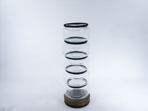 It really doesn't get any better than this as the Alcorns were some of the finest magic builders ever. The details on this fishbowl production are as they should be and the production of 5 fishbowls of water with or without fish leave and audience astounded with amazement! The stack of 5 bowls on the wood pedestal stands 24” high and the bowls are 8 1/2” diameter with each one having a separate fitted felt liner around the rim. The gimmick is so well made and secure with the final release at the bottom springing wide open so as to give good clearance at a very important time in the effect. A truly first rate professional effect in very fine unused condition.