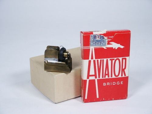 Includes Bridge size deck in box with tax label seal. A tiny wind up motor with housing that enables this to be clipped on the card case and has an on/off button switch. Condition very fine.