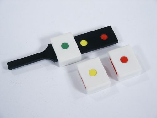 A look alike to the style of paddle made by Eddy Taytelbaum where spots jump from the removable sleeves onto the paddle and finely all gather back on one sleeve. Includes instructions. Condition very fine.