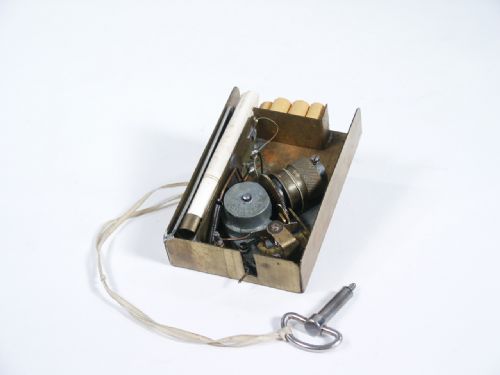 Brass construction and made to fit within a cigarette pack so you will be able to cause a cigarette to rise mysteriously where it is then removed. After this the pack is set down and another rises from within! Condition very good.