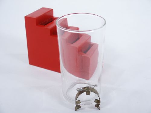 If you ever poured over the old catalogs chances are you would find this description of an effect where four half dollar coins (not supplied) would vanish from this wood staircase stand and appear inside a silk (not included) covered glass. Includes instructions. Condition very fine.