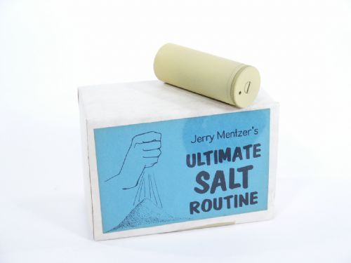 The advantage of this gimmick over most previous models is that there is no need to turn the fake over in the hand to reproduce the salt once it has vanished. Gimmick is in metal and from 1979 including illustrated instructions. Condition very fine.