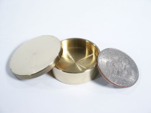 This is trademark stamped on the inside of the box and made by Jim Zee in the 1990’s. Solid quality brass and made to hold up to 4 silver dollar size coins (coins not supplied). Condition very fine.