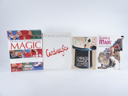 Catalog Of Magic by Marvin Kaye, Secrets Of Magic by Walter B. Gibson, Card Magic by Richard Kaufman, The Practical Encyclopedia Of Magic by Nicholas Einhorn. Condition varies, but usually good.