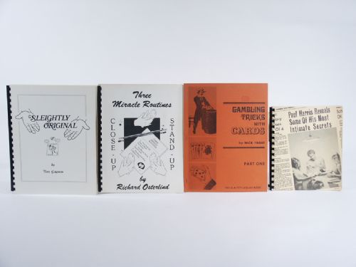 Paul Harris Reveals Some Of His Most Intimate Secrets by Paul Harris, Gambling Tricks With Cards by Nick Trost, Slightly Original by Tom Gagnon, Three Miracle Routines by Richard Osterlind. Condition varies, but usually good.