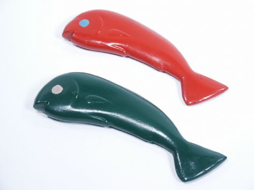 The fish are dimensional and 7" in length for the effect of one larger than the other and vice versa. No instructions. Condition very fine.