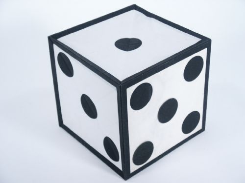 A 7 1/4" square board is shown to have a single spot on one side and a six spot on the other. The board is turned now showing a three spot on one side and turned again to show a four spot! The board is turned again this time showing a two spot and then on the other side a five spot. As a finish to this routine the board expands into a cube! Includes illustrated instructions. Condition light discoloration to the two surfaces that the action occurs upon otherwise very fine.