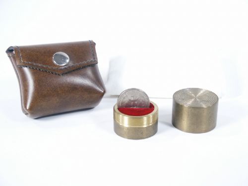 A borrowed marked quarter is vanished and appears within this brass casket which takes a spectator many turns to open. Absent the small plastic cup which is mentioned in the instructions, any small plastic tumbler will do as it is ungimmicked. Includes carry case as it originally came with in the 1970's. Includes 2 pages of instructions. Condition handkerchief has light soil and the magnet with cotton thread will need to be reattached, the bottom of casket has some patina but works fine. Does include steel core quarter. This is not a common early Johnson item.