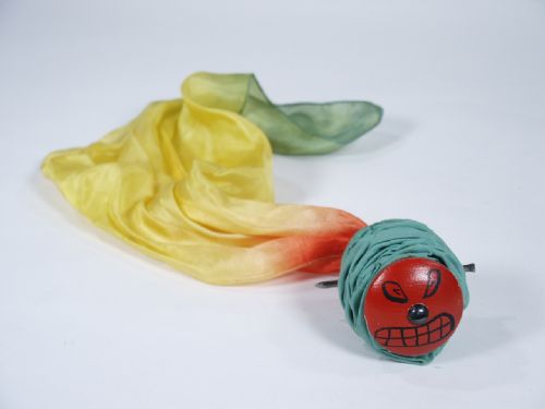 After displaying a silk it is tossed into the air and changes to a silkworm while in mid-air! Circa 1940’s and includes 12” multi color silk. Includes instructions. Condition very fine.