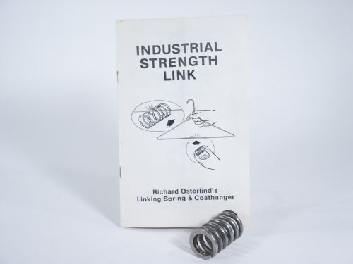 If you ever worked the magic ring and spring which has been around for decades you will certainly enjoy this version. A stainless steel spring links and unlinks to a coat hanger and is quite visible as the spring is 1 1/4” in diameter with a length of 2”. This Richard Osterlind effect includes a 16 page illustrated booklet. Condition very fine.