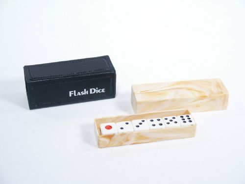 Six Dice in a small case undergo a baffling series of transformations. The magician may also predict a number of spots on the dice rolled by a spectator and make all the dice change to a selected number. This is item T-72 of the Tenyo line and includes illustrated instructions. Condition very fine.