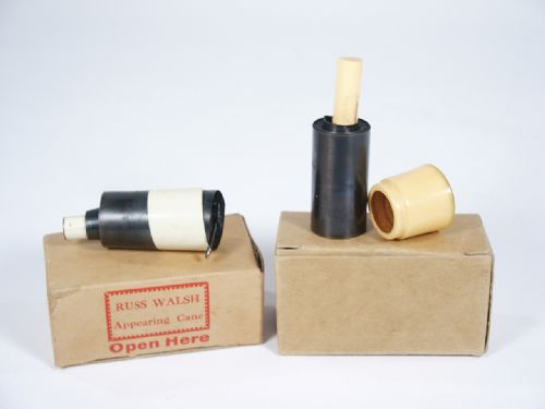 Both canes have very light surface rust due to storage and non use and both are of steel. Included are instructions for the appearing cane. Condition very good.