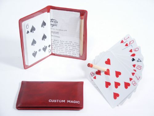Mr. Williams with his business entitled “Custom Magic” is well known for his quality large apparatus effects and in particular the Okito-Williams line. He did enjoy making a few close up effects as well and this is a penetration of a card in to a fan held together by a dowel. This is 2 set ups in their own vinyl case. Both include instructions. Condition fine.
