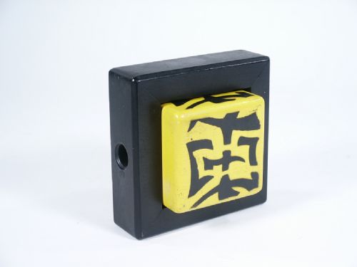 After a die decorated with Asian design is placed in the center of a frame it is held in place with a length of ribbon. With this being held firmly in place, both ends of the ribbon are held by a spectator and the die is caused to pass through the ribbon and from the frame! The ribbon is then seen to pass freely back and forth through the frame! Ribbon not supplied. Includes instructions. Condition very fine.