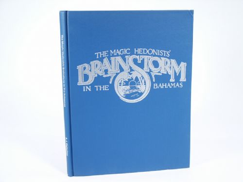 Brainstorm written by Adam Fleischer, copyright 1983, 1st edition, cloth bound, 110 pages with photos and illustrations for all types of Close Up magic effects using Coins, Cards, Reading Glasses and would you believe a use for a Coat Hanger? This was conceived created produced developed practiced and published by Mike Ammar, Daryl, Adam Fleischer and Paul Harris. Condition light foxing to top page edges, bump to bottom front cover near foot, otherwise very fine.