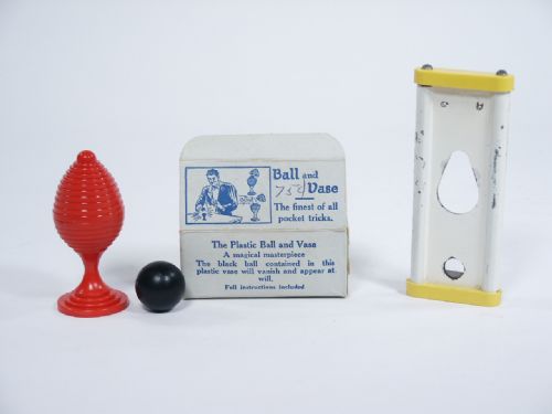 The finger chopper is of metal with wood dowels with some paint absence but works fine, including instructions. The Ball and Vase is in original box, including instructions. Condition very fine.