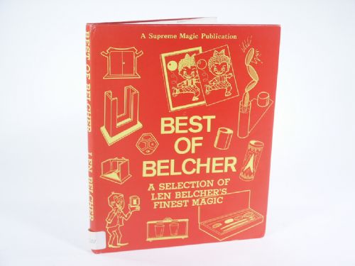 | 1980, Supreme Magic Publication, cloth bound, gilt stamping, 152 pages, photos and illustrations. Some of what Edwin the Publisher’s Foreword wrote: Foreword to a book of splendid material by a magician and magical inventor. Len Belcher has contributed to the world’s major magical magazines for a very great number of years; a whole host of his items have been marketed, tricks of all kinds…..miracles for the Mentalist, rollicking laughter makers for the children’s performer, subtle creations for the close-up worker and still the ideas come! Some of the contents: An Idea for a Screen Table, Belcher's Club Table, Pig Deal, Knock Knock, Sponge Down, The Ring and the Ball, Zippo Bag, Post Prediction, Bloxo for Children, Minnie Loo, That Doggie, Prediction Box, Magic Slate, The Book of Delphi, Model Illusion, A Blooming Miracle, Paints for Christmas, Split Memory, Miaow!, The Emperor’s Wardrobe, Block in Balloon, You’re Fired, Diploma, The Country Mouse, Disintegration, House of Cards, Donkey’s Tail, Magic Painting Plus, Min-Dye Box, Invisible Bunny and much more. Condition very fine. |